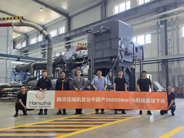 韓華壓縮機首臺中國產(chǎn)36000Nm3/h機組成功下線(xiàn)