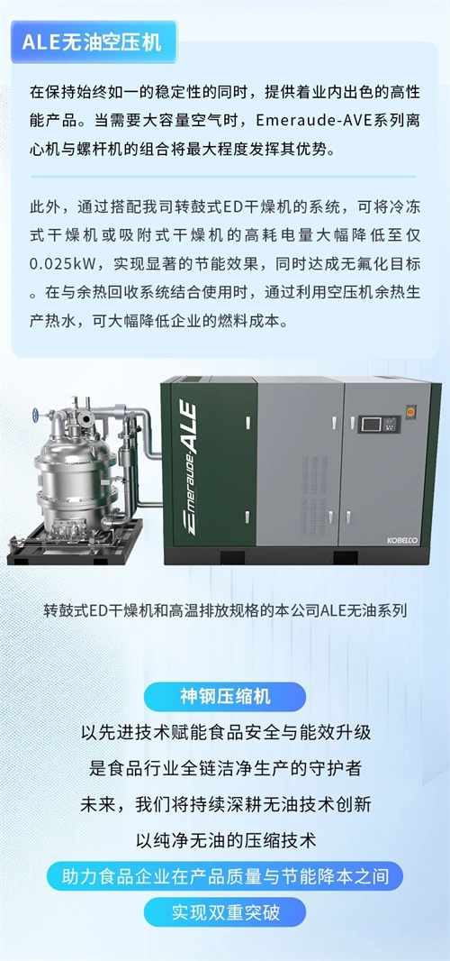 神鋼ALE系列無(wú)油空壓機賦能食品生產(chǎn)安全與企業(yè)能效升級